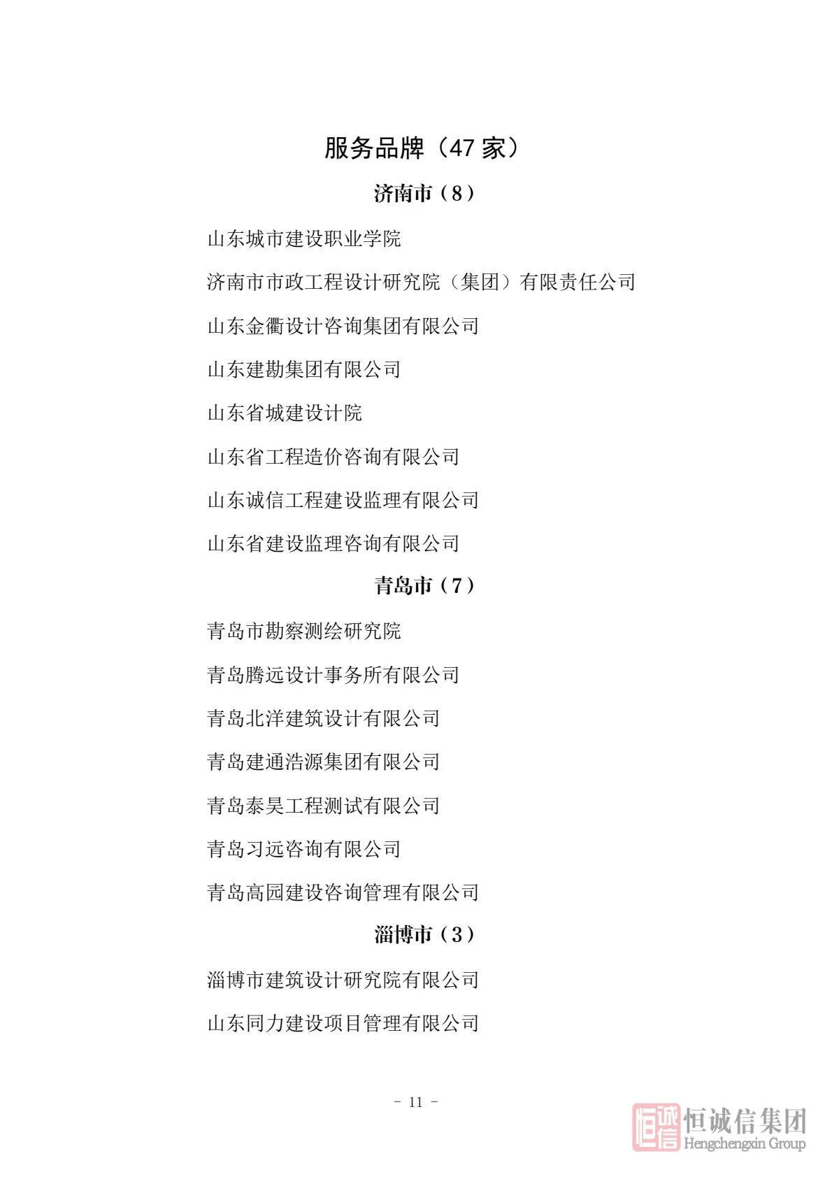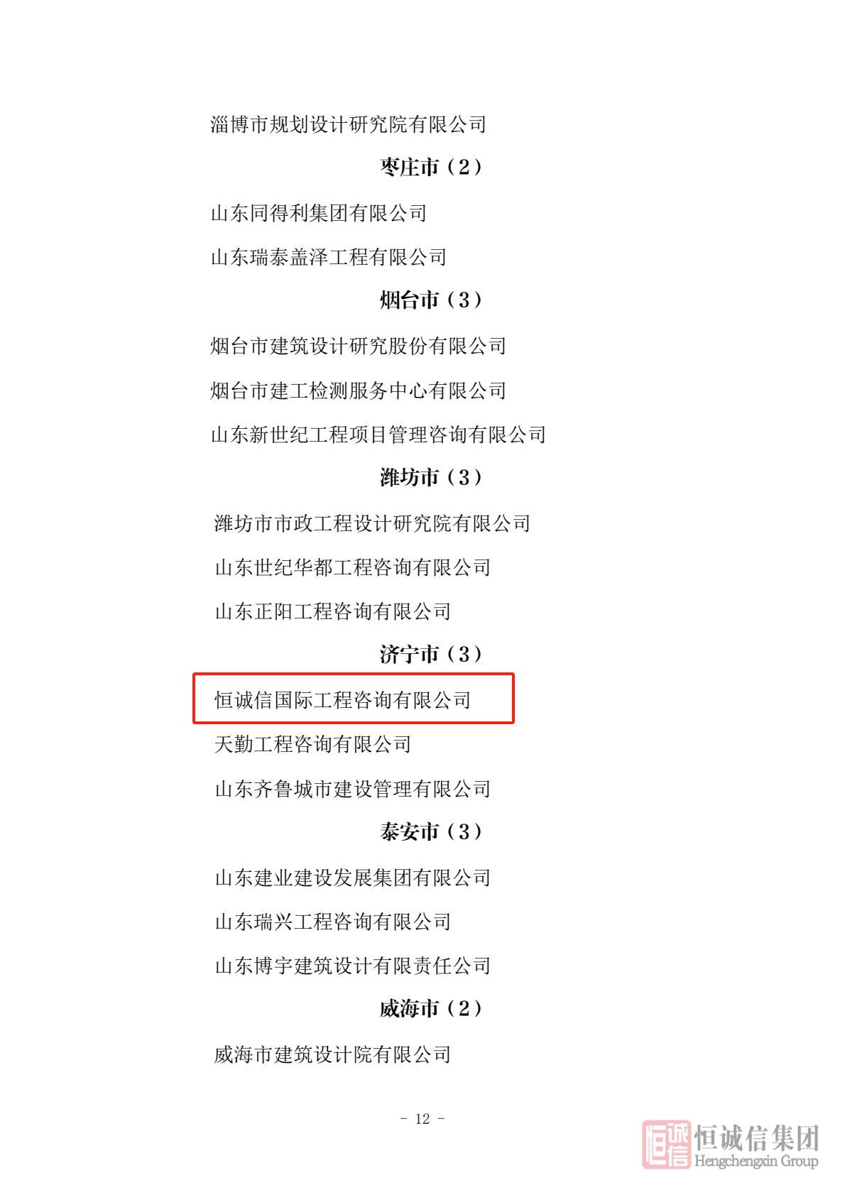“齊魯建造” 品牌遴選工作旨在推動(dòng)山東省建筑業(yè)品牌化、高端化發(fā)展,通過樹立行業(yè)標(biāo)桿,引導(dǎo)企業(yè)加強(qiáng)技術(shù)創(chuàng)新、管理創(chuàng)新與品質(zhì)創(chuàng)新,進(jìn)而提升“齊魯建造” 品牌在全國(guó)乃至全球的競(jìng)爭(zhēng)力。本次遴選面向全省建筑業(yè)全產(chǎn)業(yè)鏈,涵蓋企業(yè)、服務(wù)、部品化建材產(chǎn)品、區(qū)域等類別。恒誠(chéng)信在眾多申報(bào)企業(yè)中脫穎而出,充分彰顯了其在工程咨詢領(lǐng)域的領(lǐng)先地位。