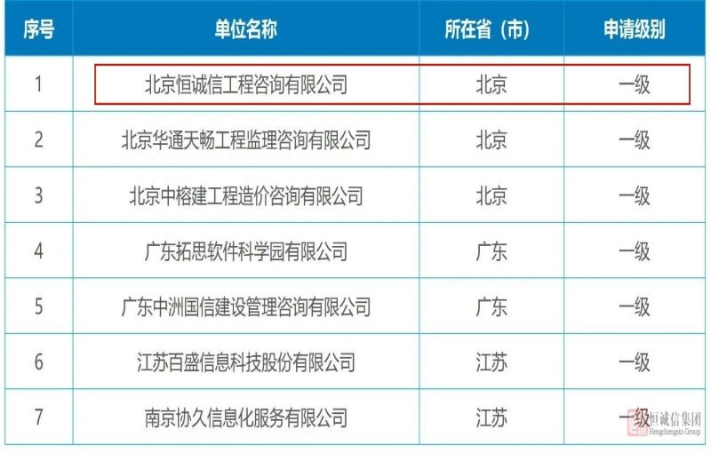 實(shí)力認(rèn)證 | 恒誠信斬獲軟件造價(jià)評估一級資質(zhì)